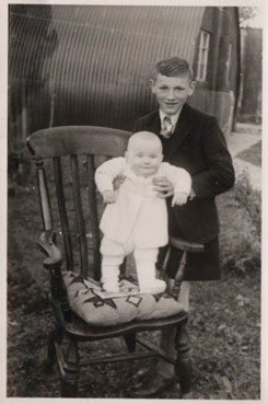 Maybe with all this excitement about my baby brother, I missed the storks, or maybe they never came but now I had my own brother!  Dad got a perambulator from somewhere for baby George to live in and it was my job to shake him to sleep if he was crying. I soon got used to having a brother and, actually, I quite liked to show him off to my friends. Funnily enough one of our hens got to like him too – this young black hen would fly onto the handle of the perambulator and keep on googling George so much so that I was afraid she might decide to give him a peck in the eye! I couldn’t risk that – he was MY brother. Tatuś was also getting a bit worried by this cheeky little hen’s affection for HIS baby son… so, though very reluctantly, I had to chop this little hen’s head off; actually maybe Tatuś did it in the end.